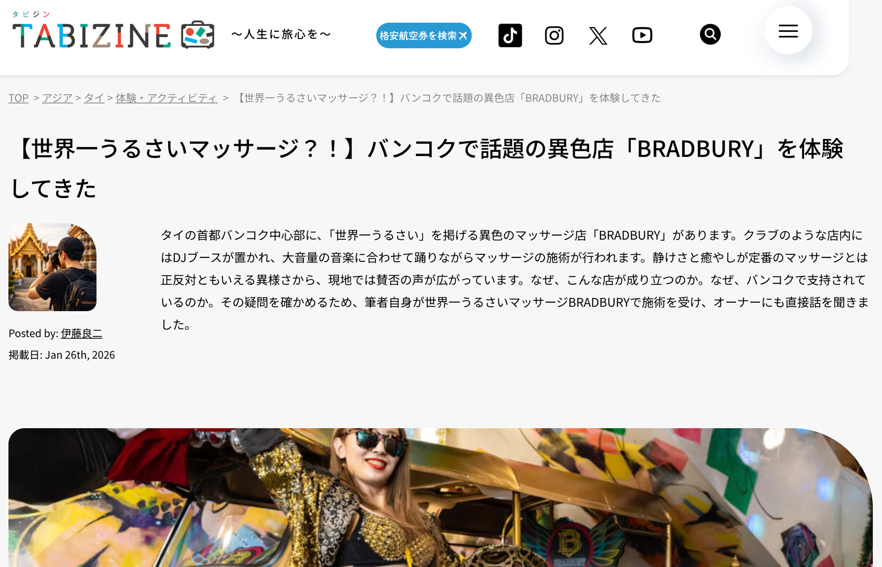 BRADBURY接受了日本旅游媒体「TABIZINE」的采访报道。